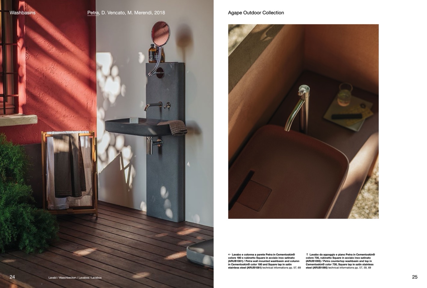 Lavabo e colonna a parete Petra in Cementoskin®