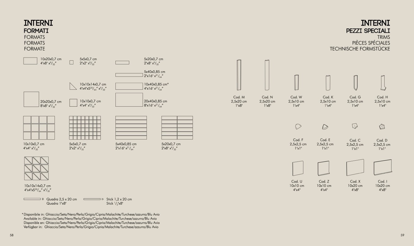 Available in: Ghiaccio/Seta/Nero/Perla/Grigio/Cipria/Malachite/Turchese/azzurro/Blu Avio
