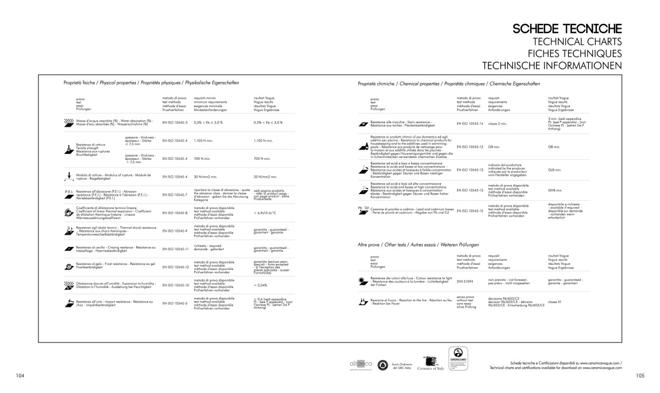 Technical charts and certifications available for download on www.ceramicavogue.com