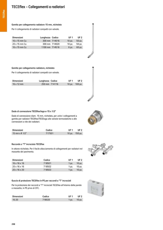 gomito per radiatori TECEflex/TECElogo alle valvole termostatiche o alle