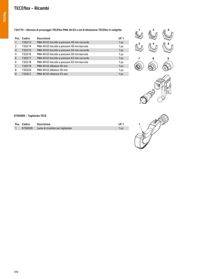 720170 – Attrezzo di pressaggio TECEflex PMA 40-63 e set di dilatazione TECEflex in valigetta
