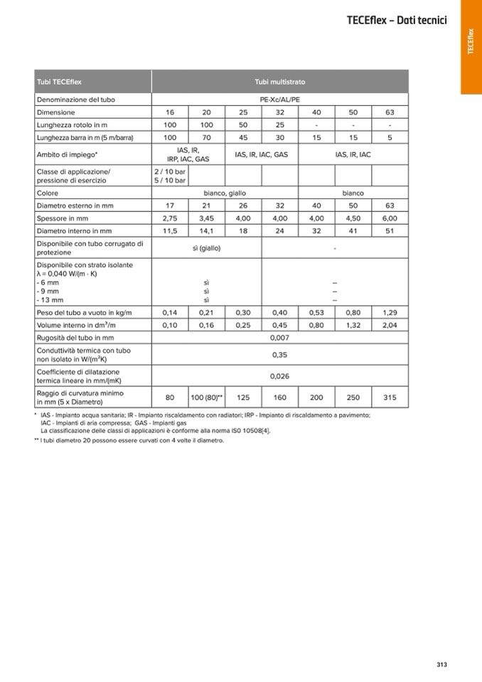 ** I tubi diametro 20 possono essere curvati con 4 volte il diametro.