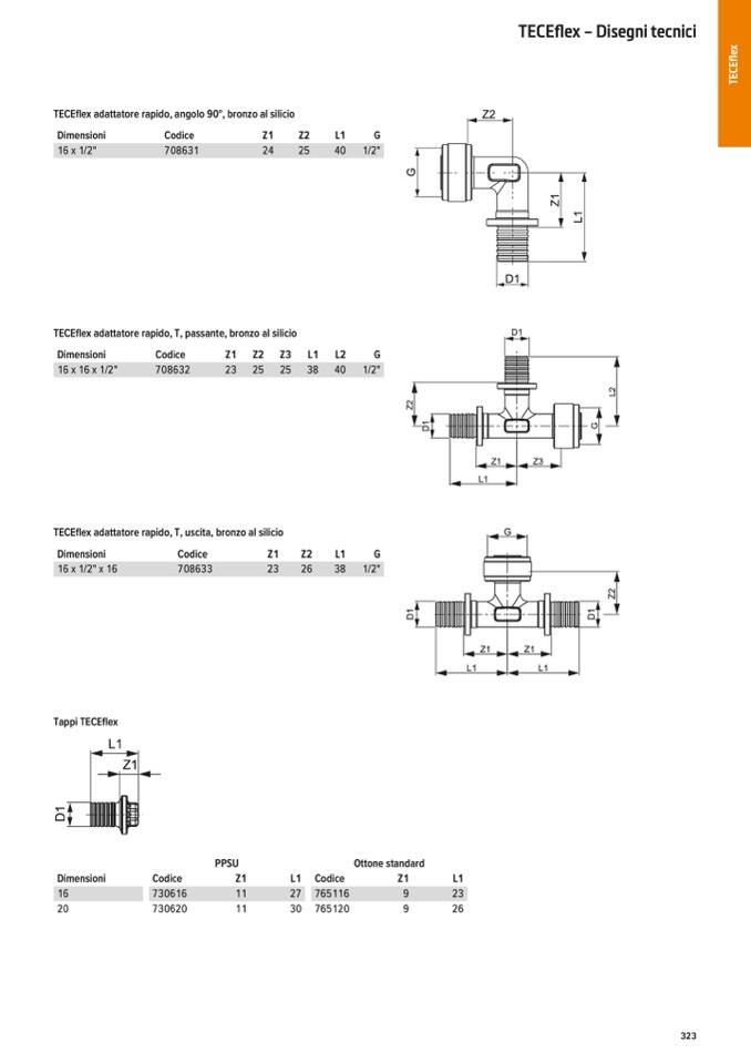 TECEflex adattatore rapido, T, uscita, bronzo al silicio