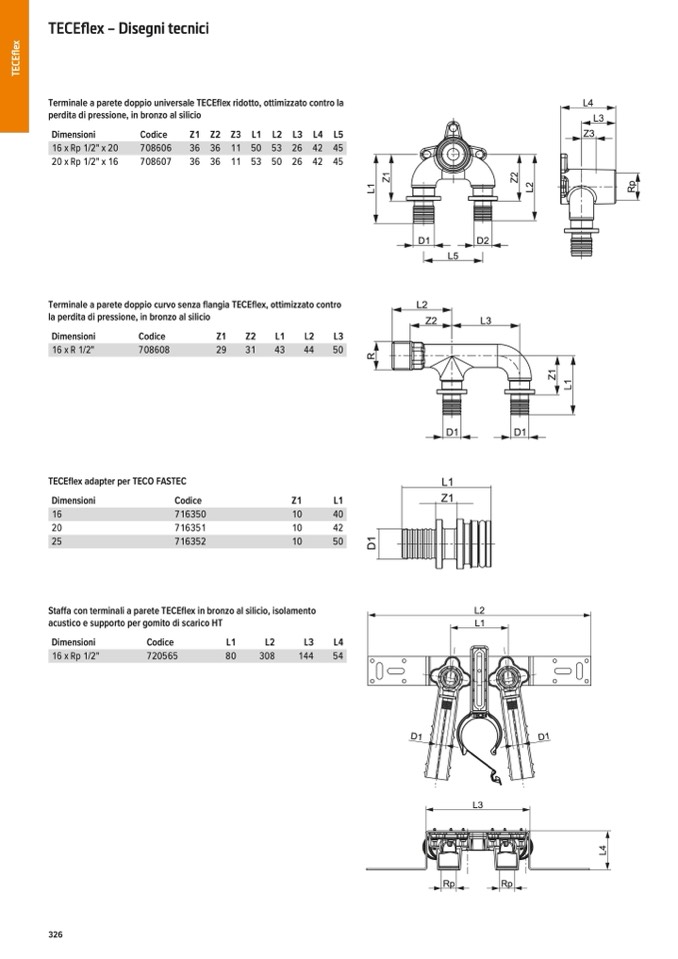 Terminale a parete doppio universale TECEflex ridotto, ottimizzato contro la