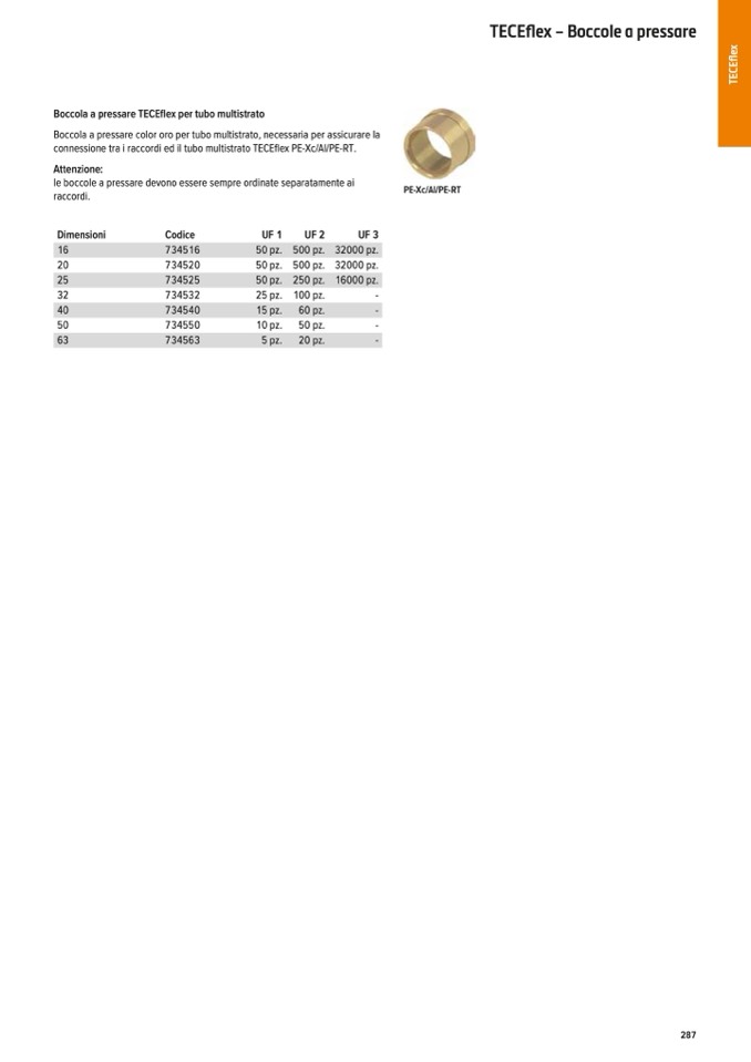 Boccola a pressare color oro per tubo multistrato, necessaria per assicurare la