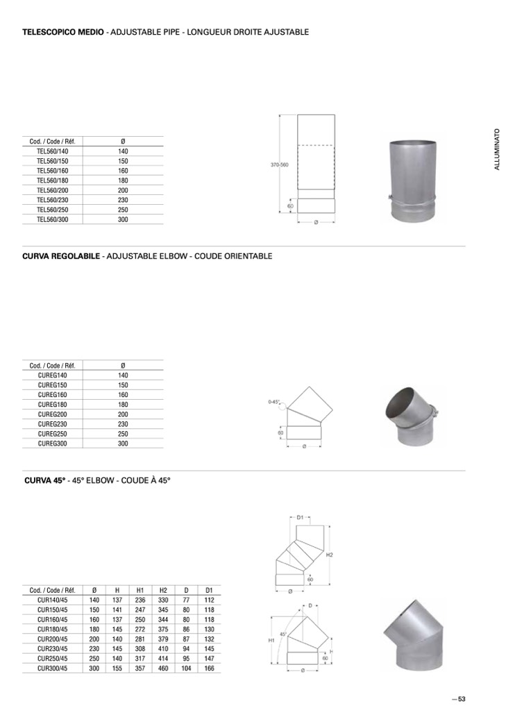 CURVA REGOLABILE - ADJUSTABLE ELBOW - COUDE ORIENTABLE
