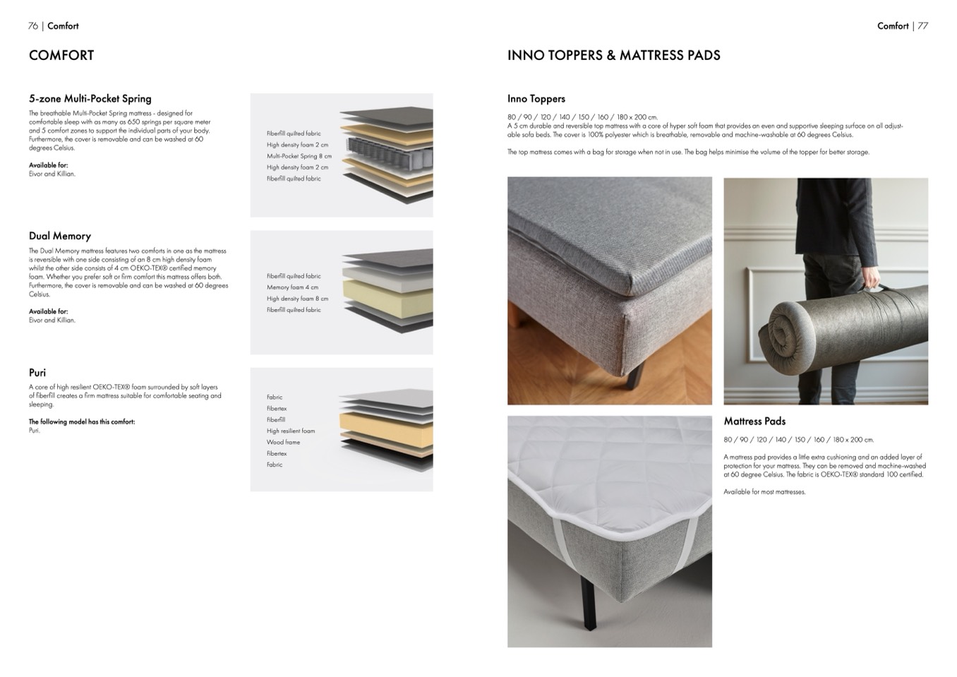 A core of high resilient OEKO-TEX® foam surrounded by soft layers