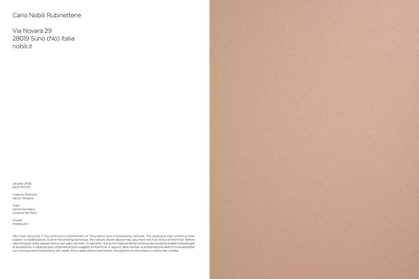di lavorazione. Il catalogo può contenere articoli soggetti a modifiche. A seguito della stampa, la presentazione delle finiture potrebbe
