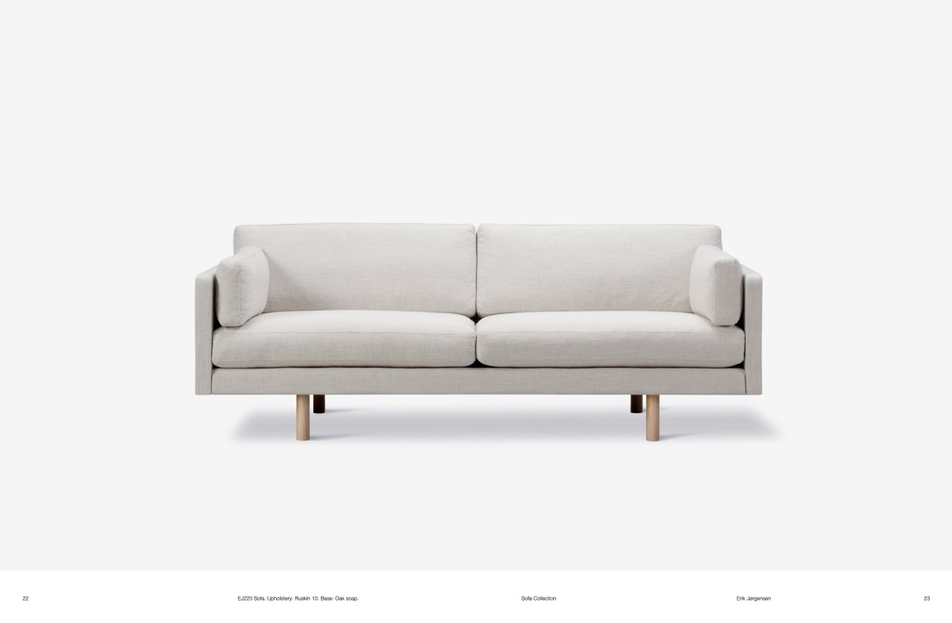 EJ220 Sofa. Upholstery: Ruskin 10. Base: Oak soap.