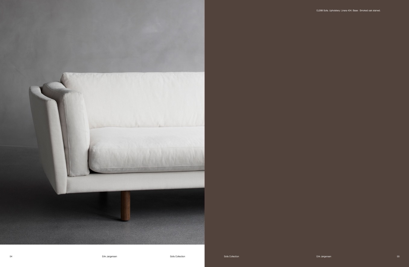 EJ288 Sofa. Upholstery: Linara 434. Base: Smoked oak stained.