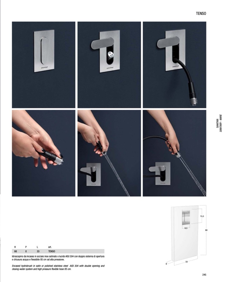 Encased hydrobrush in satin or polished stainless steel AISI 304 with double opening and