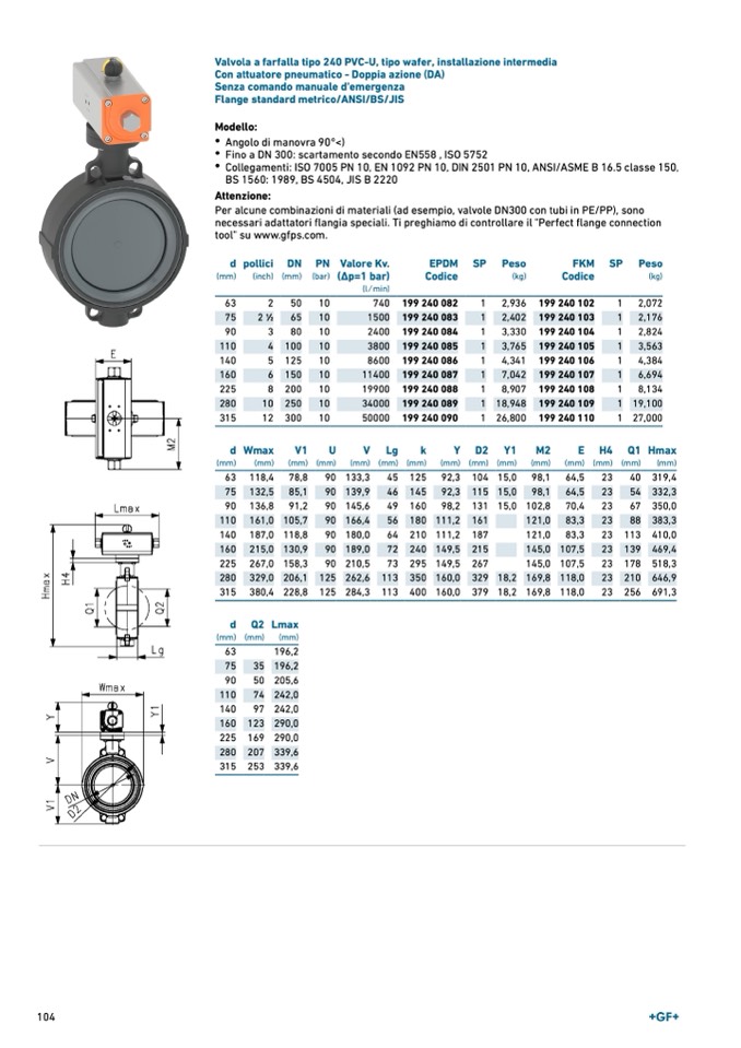 Valvola a farfalla tipo 240 PVC-U, tipo wafer, installazione intermedia
