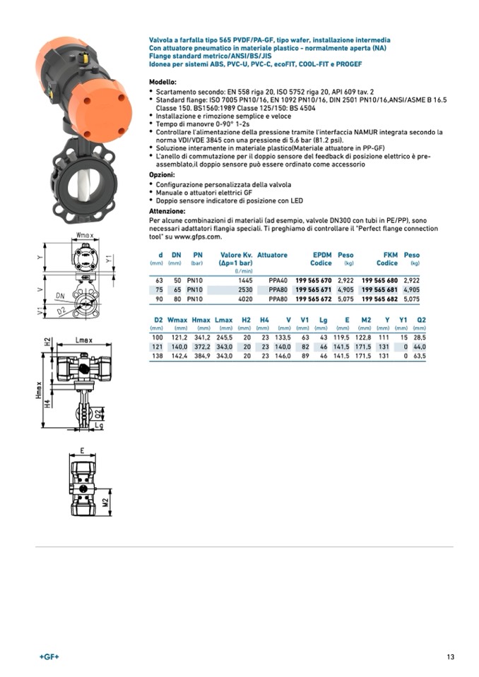 Valvola a farfalla tipo 565 PVDF/PA-GF, tipo wafer, installazione intermedia