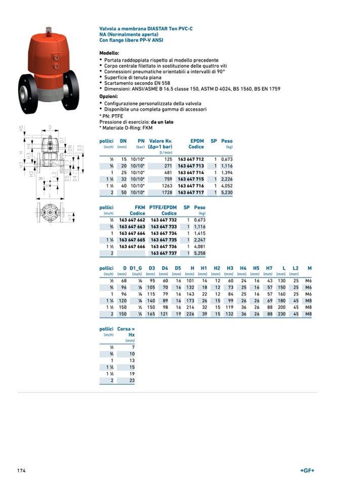 Dimensioni: ANSI/ASME B 16.5 classe 150, ASTM D 4024, BS 1560, BS EN 1759