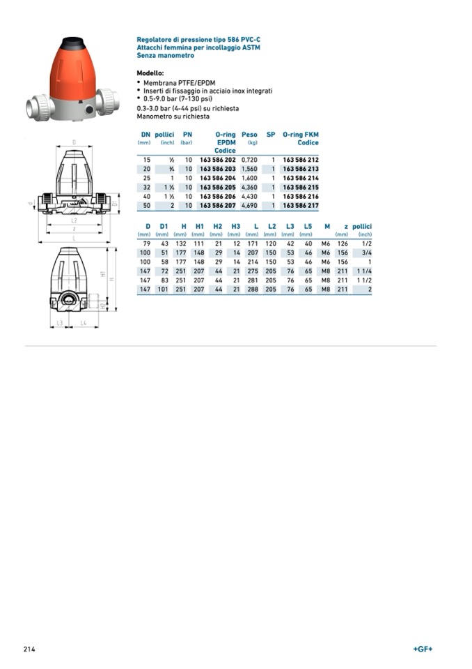 Regolatore di pressione tipo 586 PVC-C