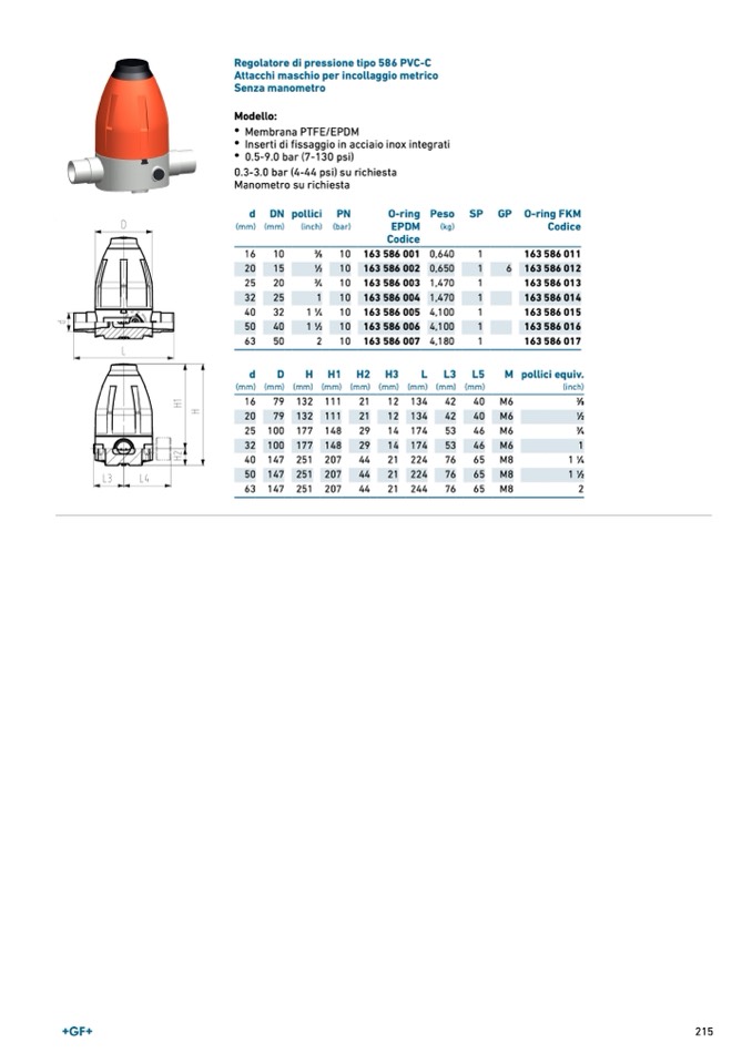 Regolatore di pressione tipo 586 PVC-C