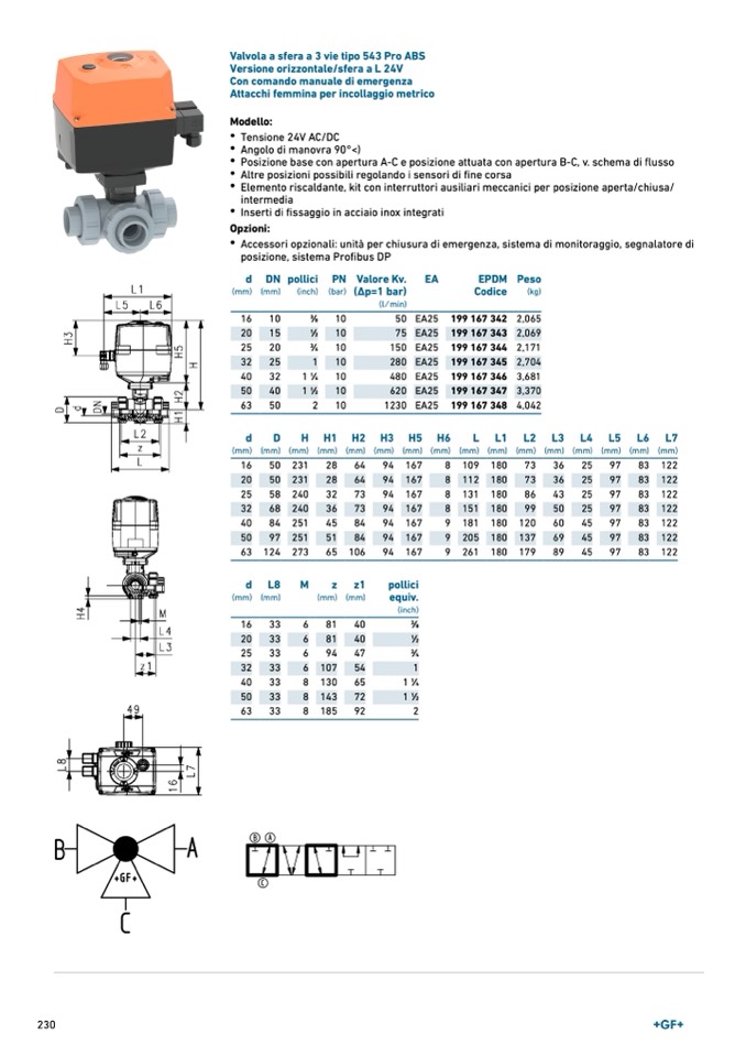 Valvola a sfera a 3 vie tipo 543 Pro ABS