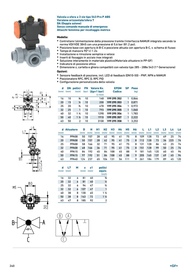 Valvola a sfera a 3 vie tipo 543 Pro P ABS