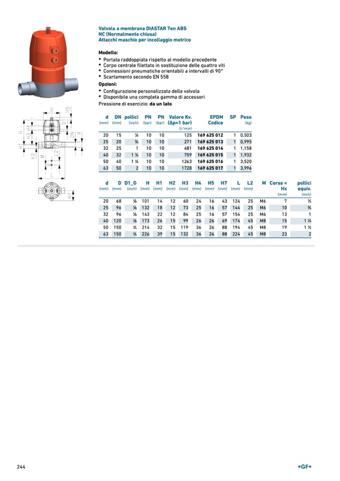Valvola a membrana DIASTAR Ten ABS