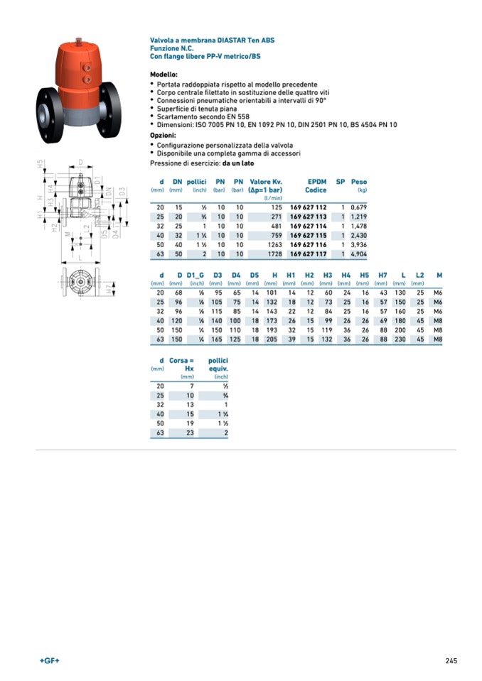 Dimensioni: ISO 7005 PN 10, EN 1092 PN 10, DIN 2501 PN 10, BS 4504 PN 10