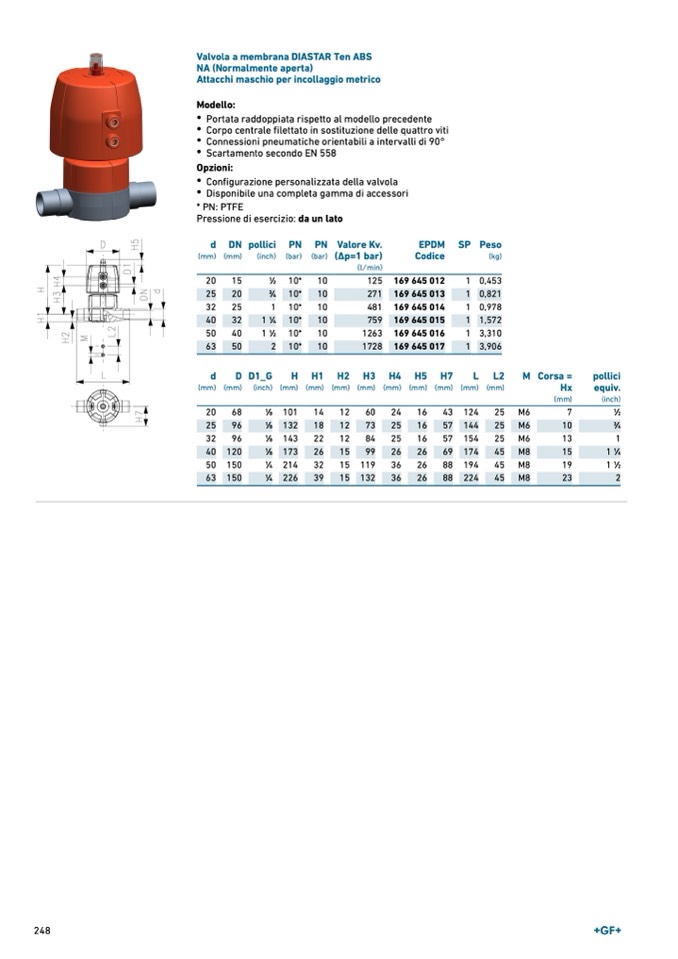 Valvola a membrana DIASTAR Ten ABS