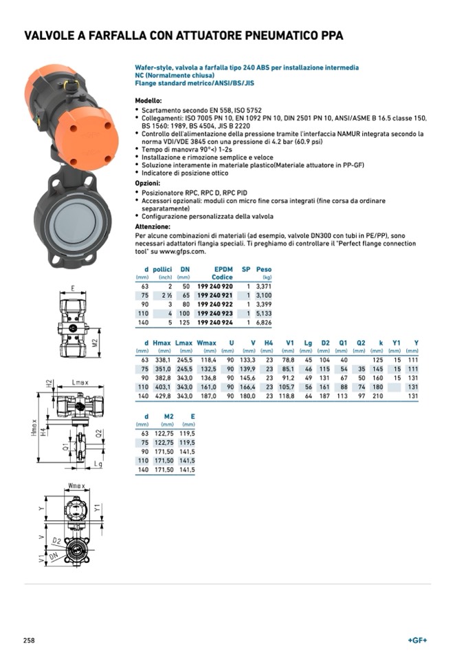 Wafer-style, valvola a farfalla tipo 240 ABS per installazione intermedia