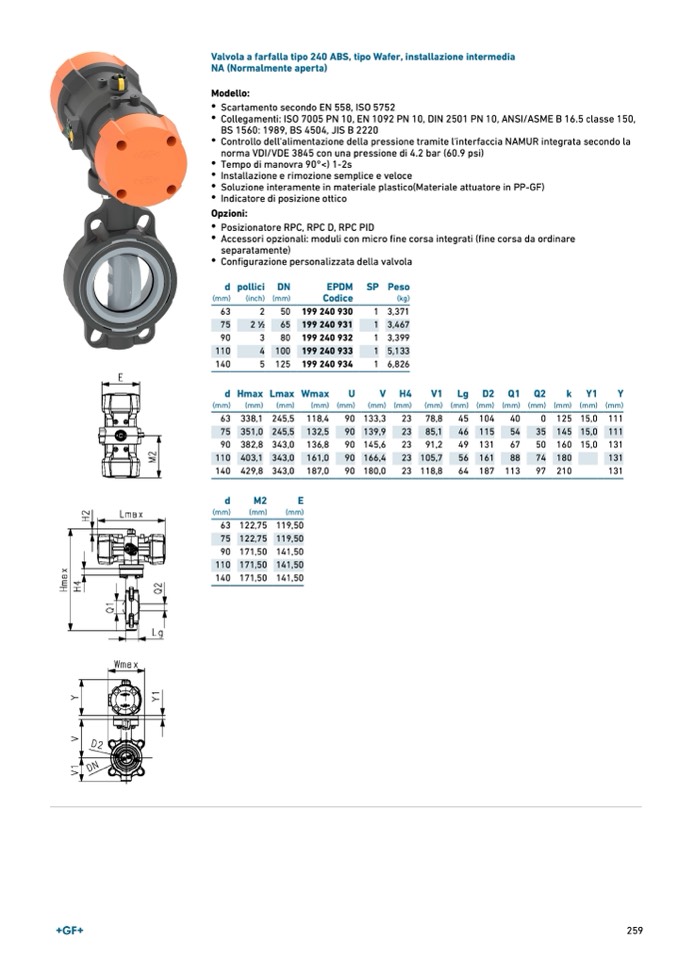 Valvola a farfalla tipo 240 ABS, tipo Wafer, installazione intermedia