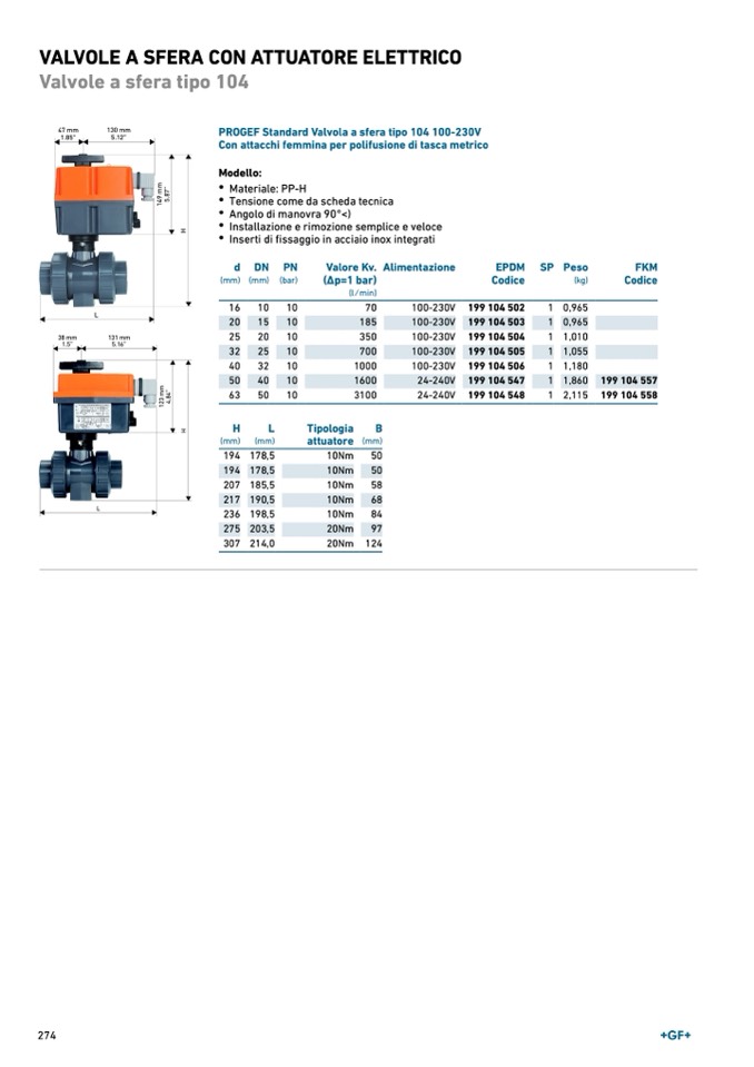 PROGEF Standard Valvola a sfera tipo 104 100-230V