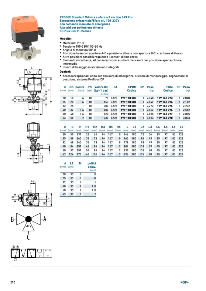 PROGEF Standard Valvola a sfera a 3 vie tipo 543 Pro