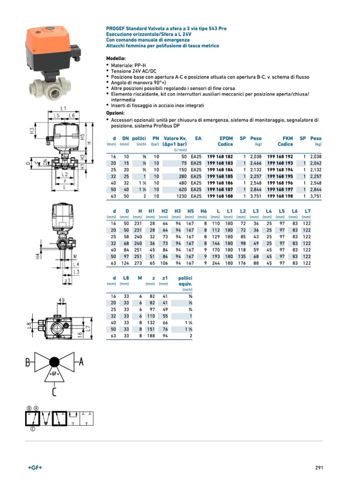 PROGEF Standard Valvola a sfera a 3 vie tipo 543 Pro