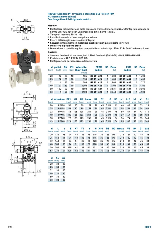 PROGEF Standard PP-H Valvola a sfera tipo 546 Pro con PPA