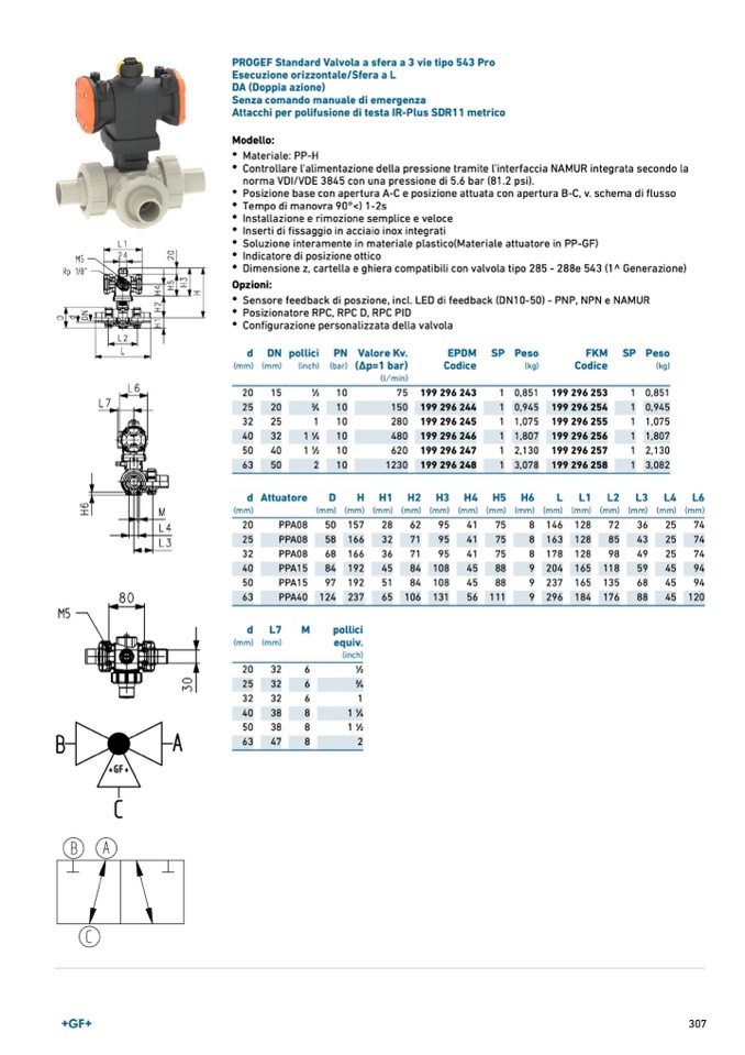 PROGEF Standard Valvola a sfera a 3 vie tipo 543 Pro