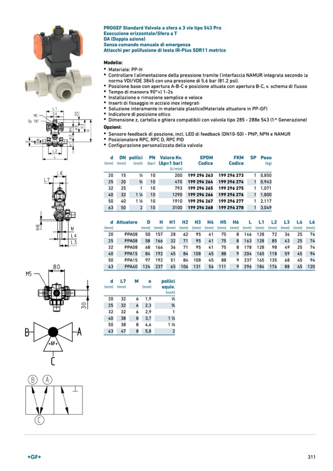PROGEF Standard Valvola a sfera a 3 vie tipo 543 Pro