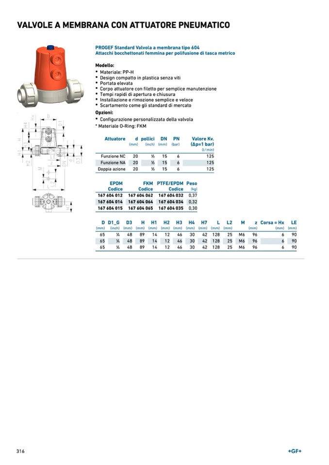 PROGEF Standard Valvola a membrana tipo 604