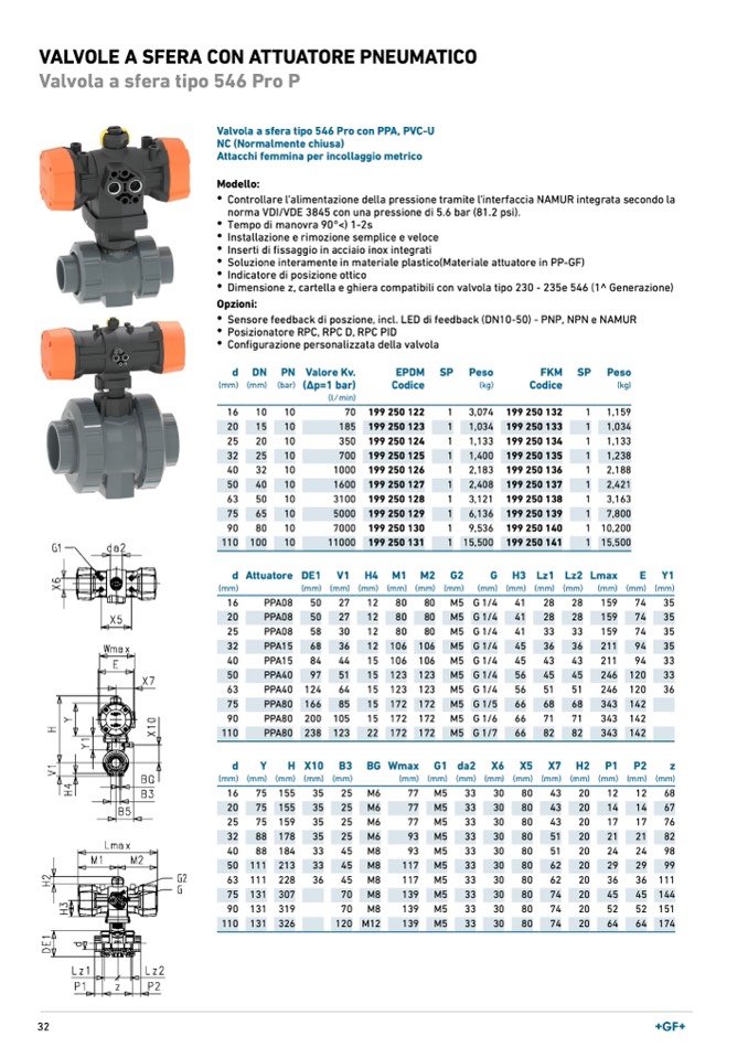 Valvola a sfera tipo 546 Pro con PPA, PVC-U