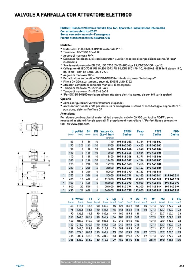 PROGEF Standard Valvola a farfalla tipo 145, tipo wafer, installazione intermedia