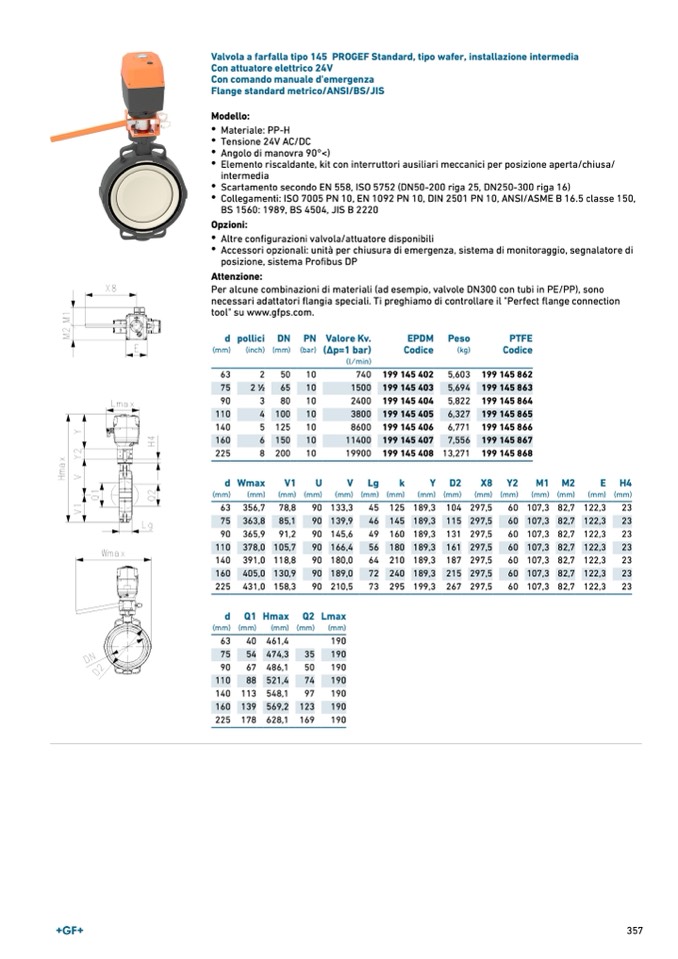 Valvola a farfalla tipo 145 PROGEF Standard, tipo wafer, installazione intermedia