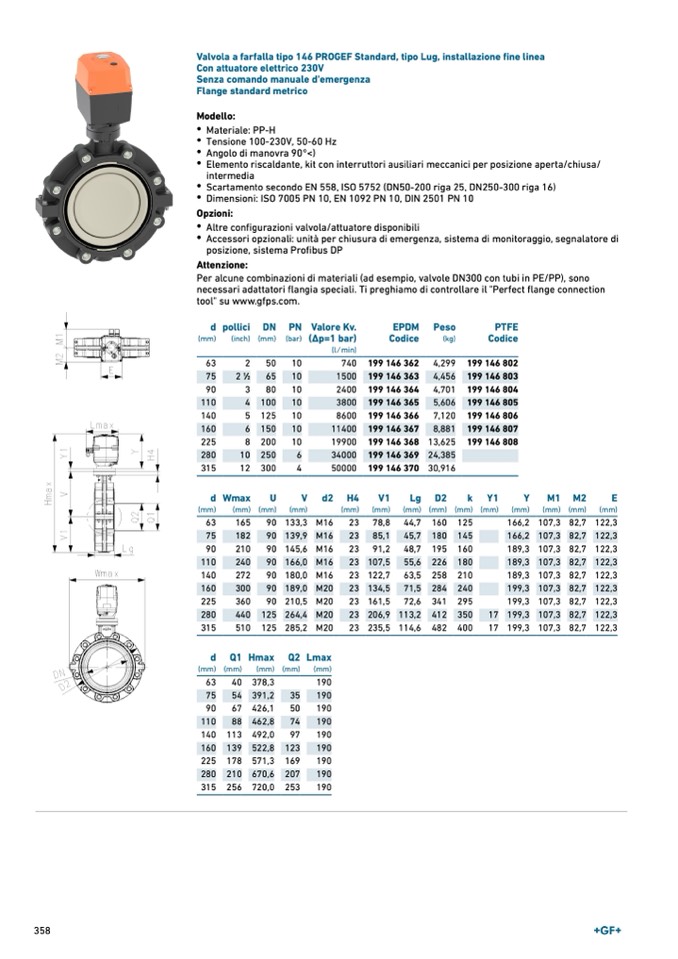 Valvola a farfalla tipo 146 PROGEF Standard, tipo Lug, installazione fine linea