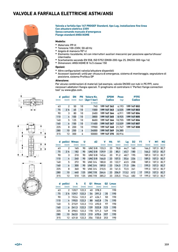 Valvola a farfalla tipo 147 PROGEF Standard, tipo Lug, installazione fine linea