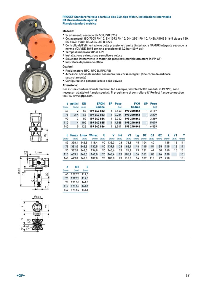 PROGEF Standard Valvola a farfalla tipo 240, tipo Wafer, installazione intermedia