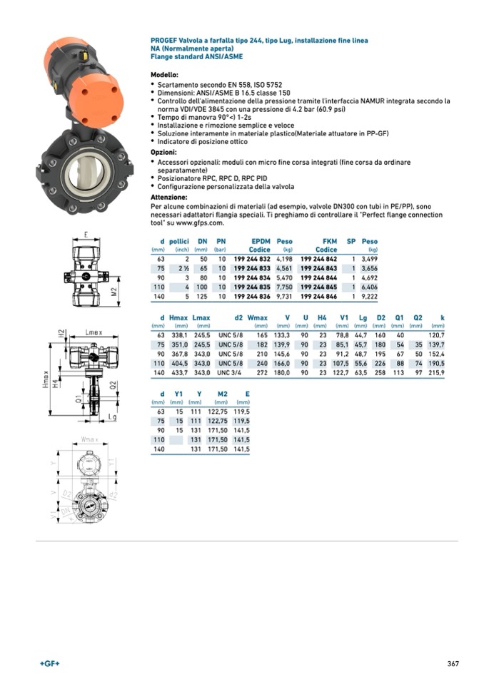 PROGEF Valvola a farfalla tipo 244, tipo Lug, installazione fine linea