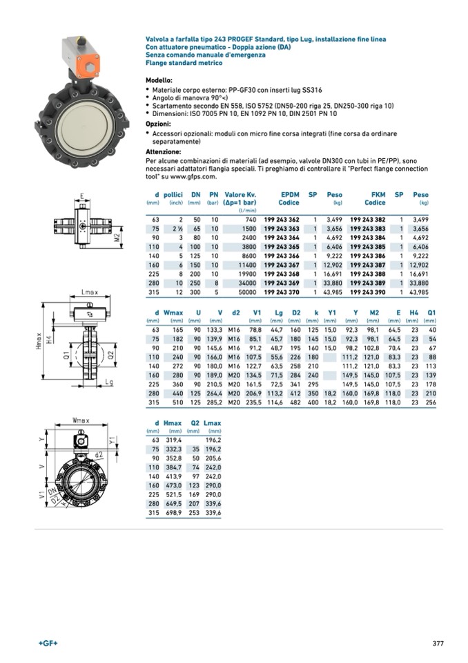 Valvola a farfalla tipo 243 PROGEF Standard, tipo Lug, installazione fine linea