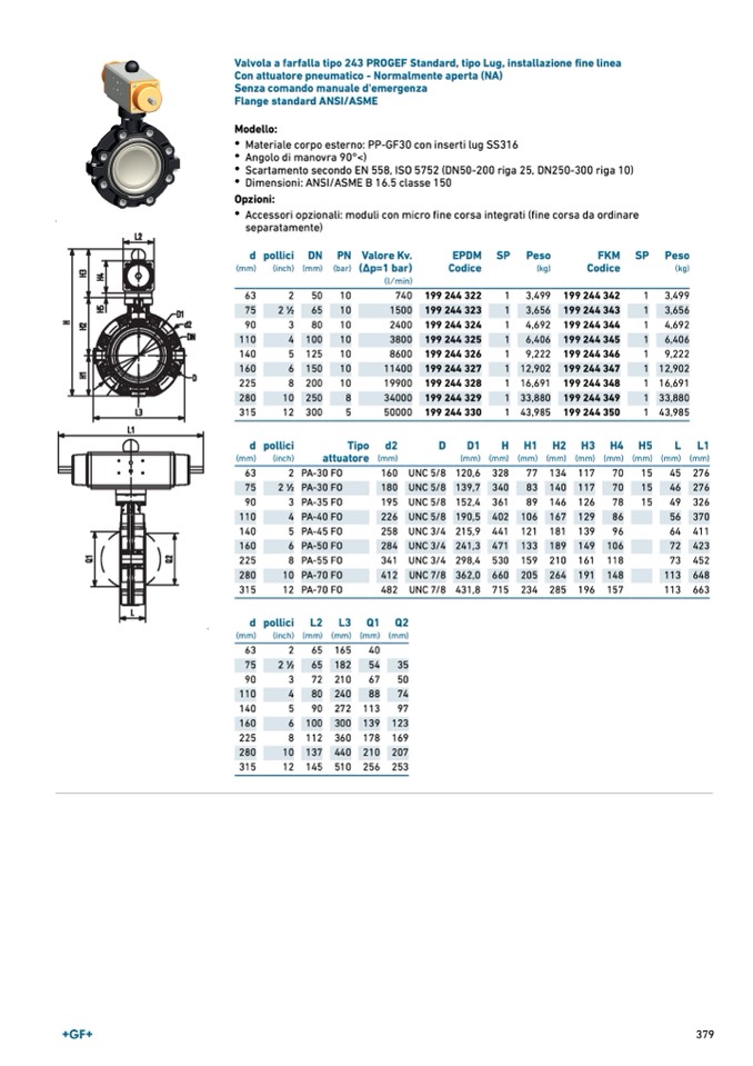 Valvola a farfalla tipo 243 PROGEF Standard, tipo Lug, installazione fine linea
