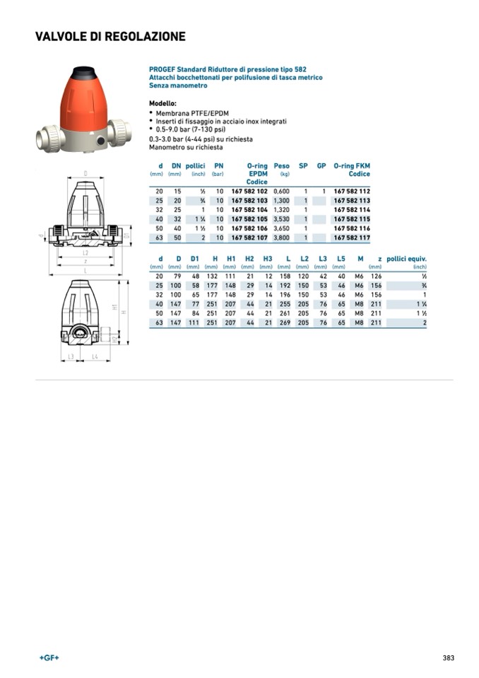 PROGEF Standard Riduttore di pressione tipo 582