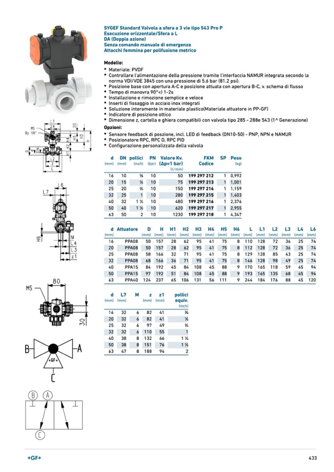 SYGEF Standard Valvola a sfera a 3 vie tipo 543 Pro P