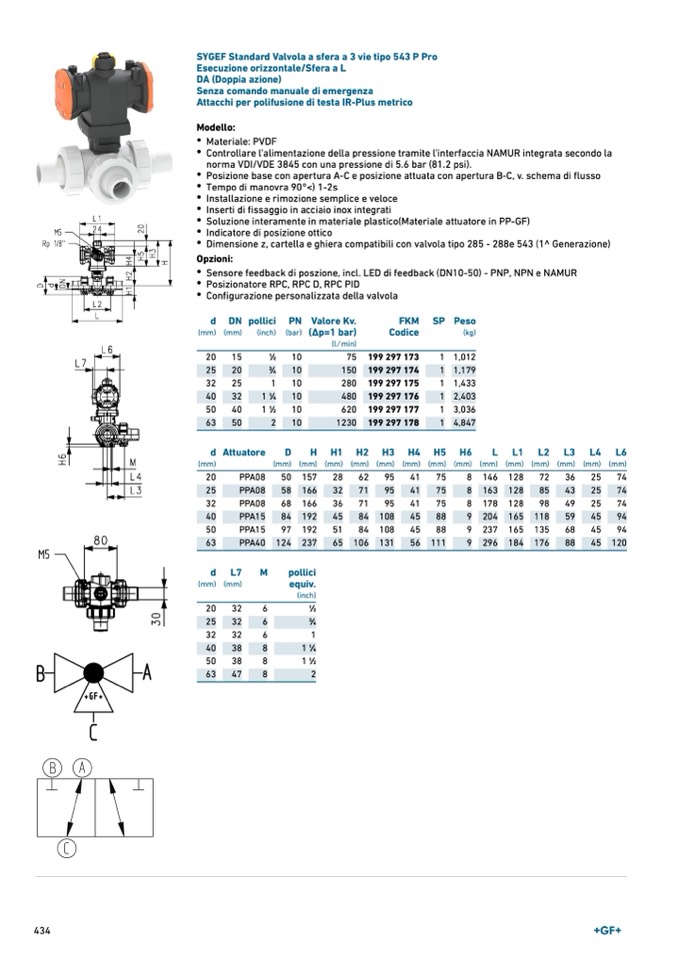 SYGEF Standard Valvola a sfera a 3 vie tipo 543 P Pro