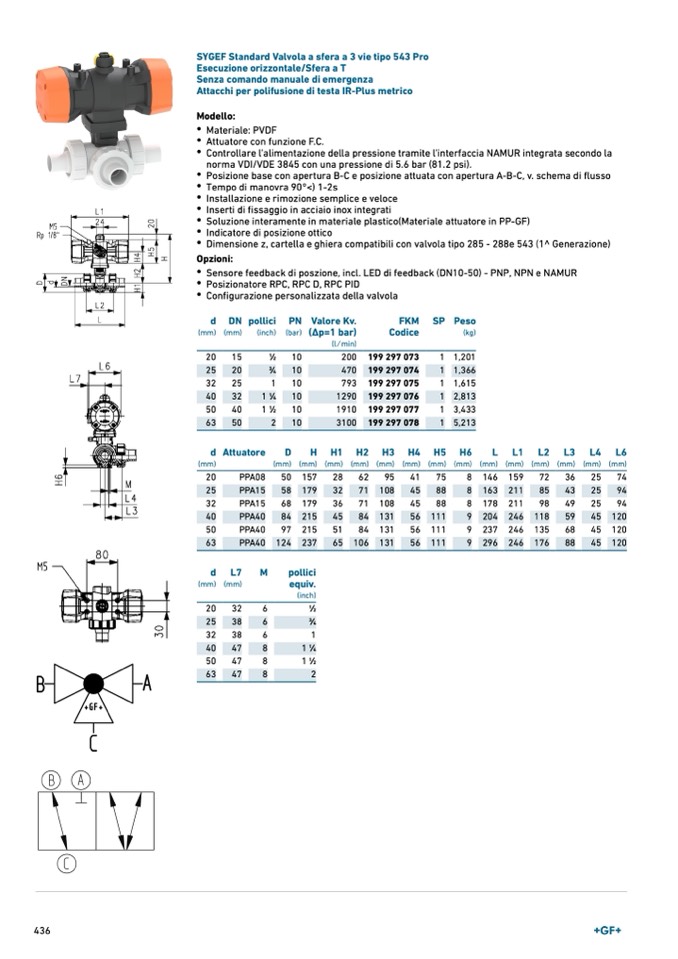 SYGEF Standard Valvola a sfera a 3 vie tipo 543 Pro
