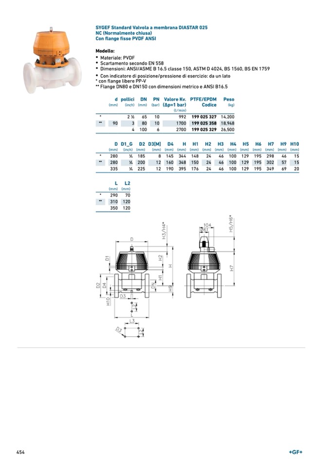 SYGEF Standard Valvola a membrana DIASTAR 025