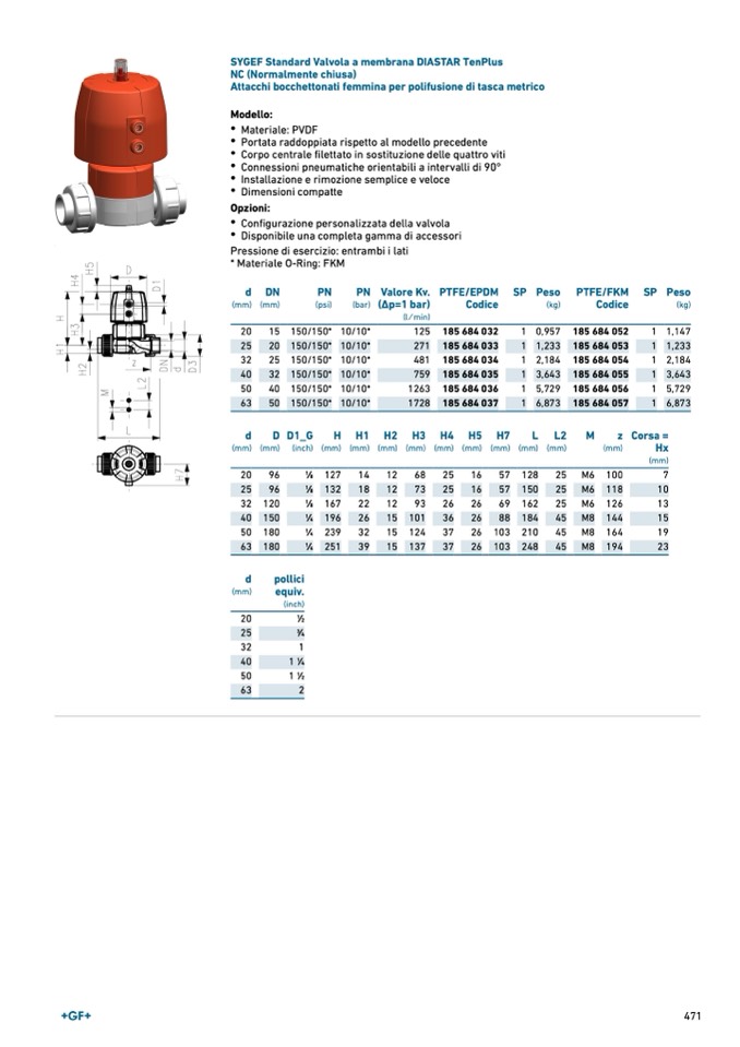 SYGEF Standard Valvola a membrana DIASTAR TenPlus