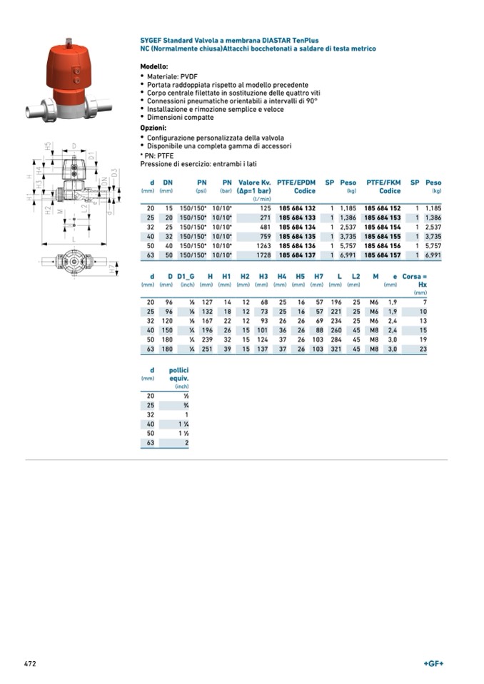 SYGEF Standard Valvola a membrana DIASTAR TenPlus